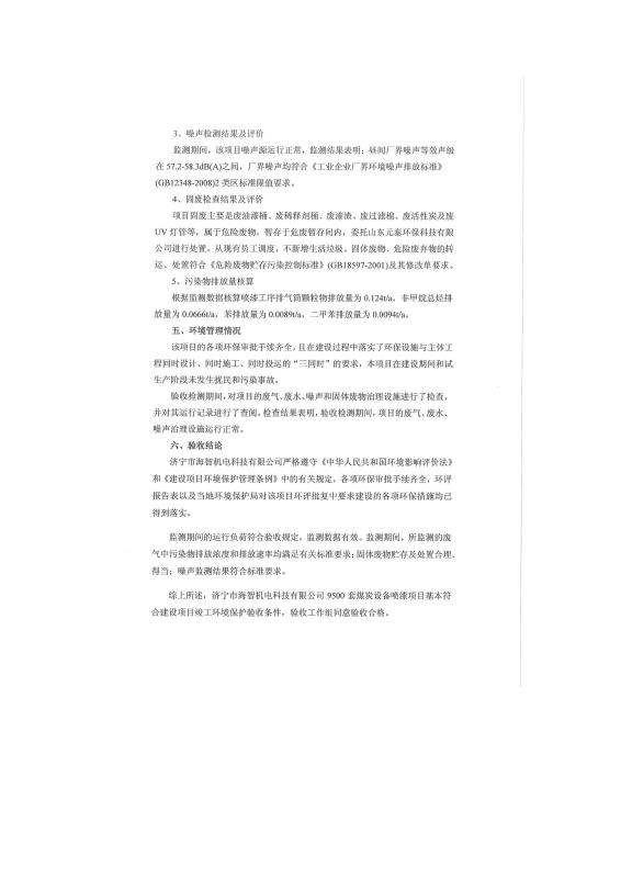 > 9500套煤炭設(shè)備噴漆項(xiàng)目竣工環(huán)境保護(hù)驗(yàn)收監(jiān)測(cè)報(bào)告