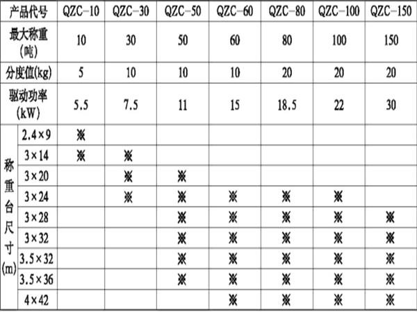 QZC系列稱板移動精準快速裝汽車系統(tǒng)技術(shù)參數(shù)表: