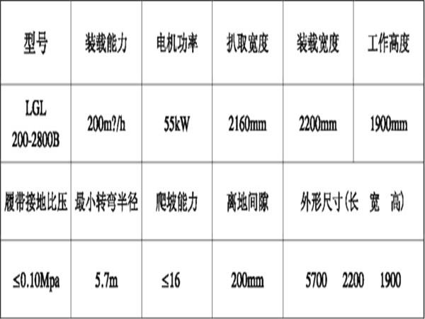 LGL 200-2800B系列滾耙裝載機(jī)技術(shù)參數(shù):